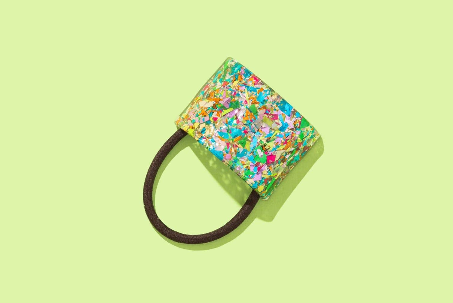 Introducing our vibrant and stylish ponytail cuff, designed to add a pop of color and flair to your everyday hairstyle. Whether you're heading to the gym, the office, or a night out, this ponytail cuff is the perfect blend of functionality and fashion. The high-quality elastic band ensures a secure and comfortable hold, making it perfect for all hair types. Elevate your hair game with this must-have accessory that promises to keep your hair in place while adding a touch of personality to your look. Each confetti piece is meticulously hand-sprinkled into the acrylic, ensuring a no-shedding experience. Thanks to this distinctive process, each piece becomes a one-of-a-kind masterpiece, making every piece as unique as the individual they're being gifted it to. Details * Ponytail cuff size: 1.4" x 2 * Bright tortoise acrylic ponytail cuff * Brown ponytail holder attached to cuff * Imported Whether it's a NYE party accessory, Galentine's day gift, or