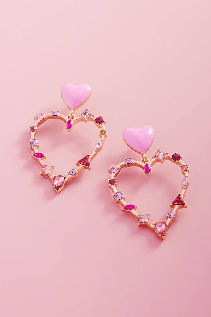 Introducing our 2 inch heart shaped enamel earrings with hypoallergenic titanium posts. These earrings are not only stylish with color stones, but also safe for those with sensitive ears. A must-have for fashion-conscious individuals seeking comfort and elegance.