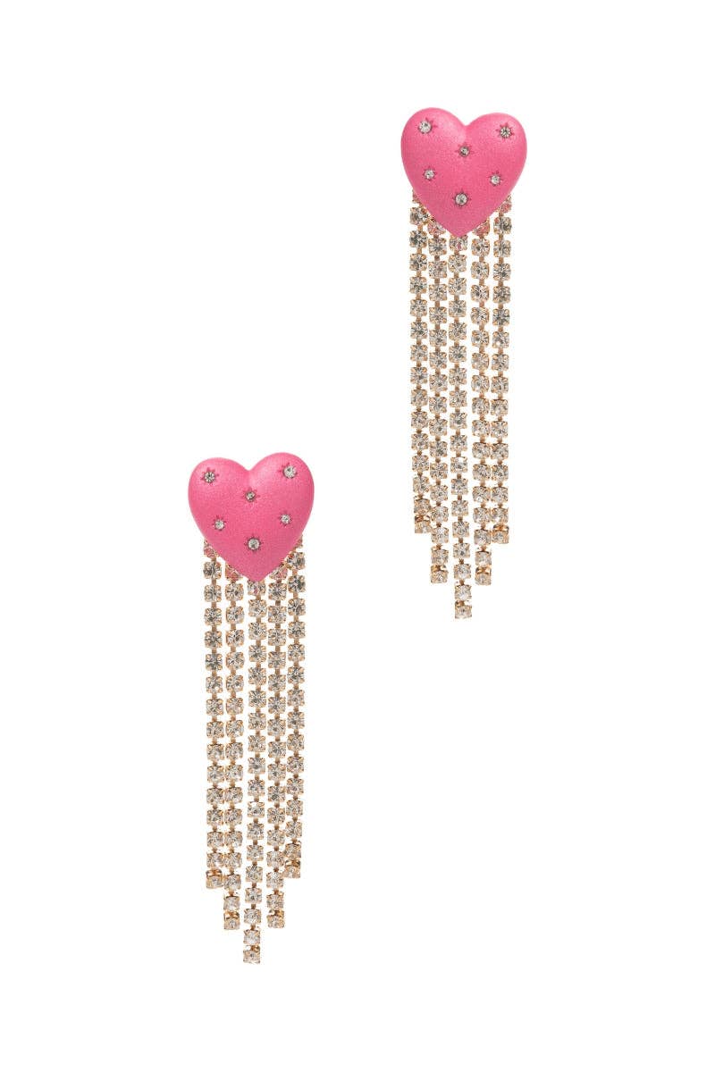Hot Pink Rhinestone Chain Heart Dangle Earrings