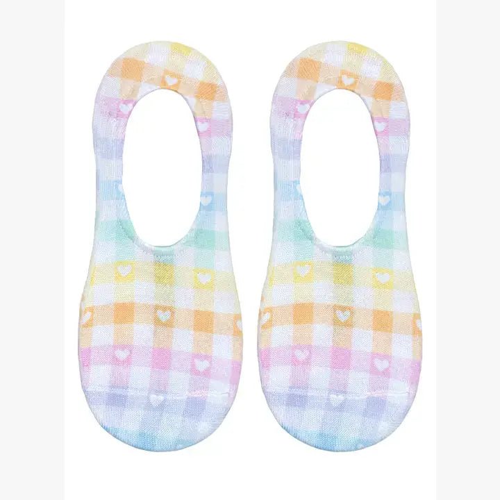 No-Show Liner Socks - Rainbow Plaid w/ White Hearts