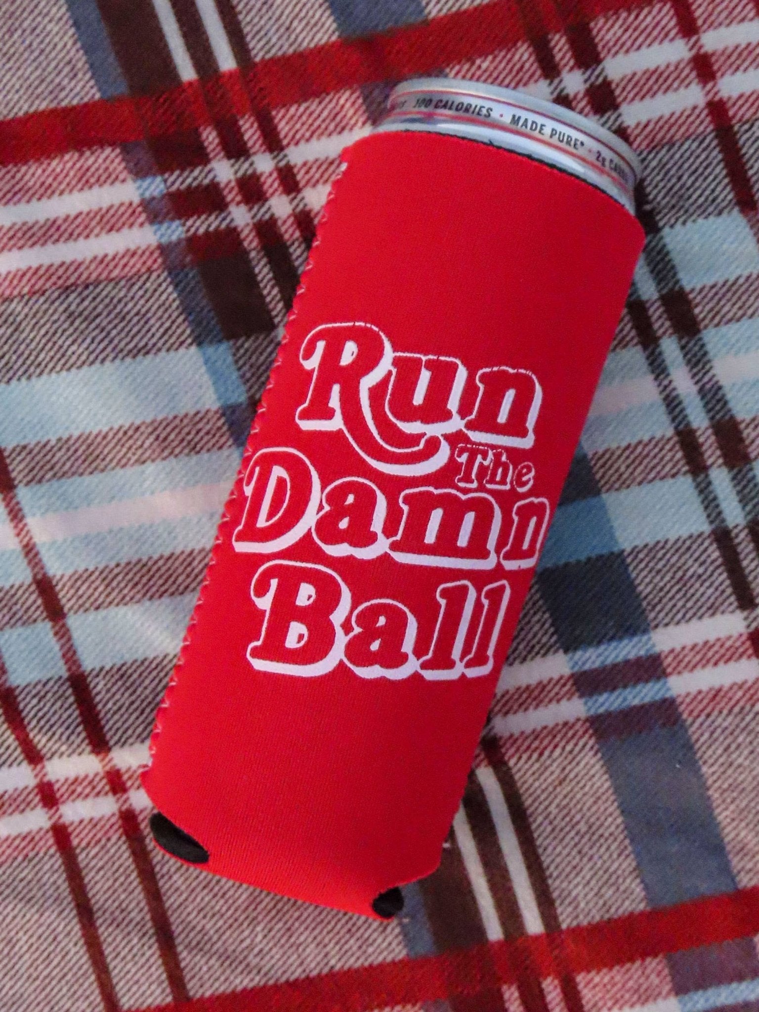 Sandra Bullock said it best as Leigh Anne Tuohy, run the damn ball! This red skinny drink sleeve is perfect for keeping your stadium beers cold!