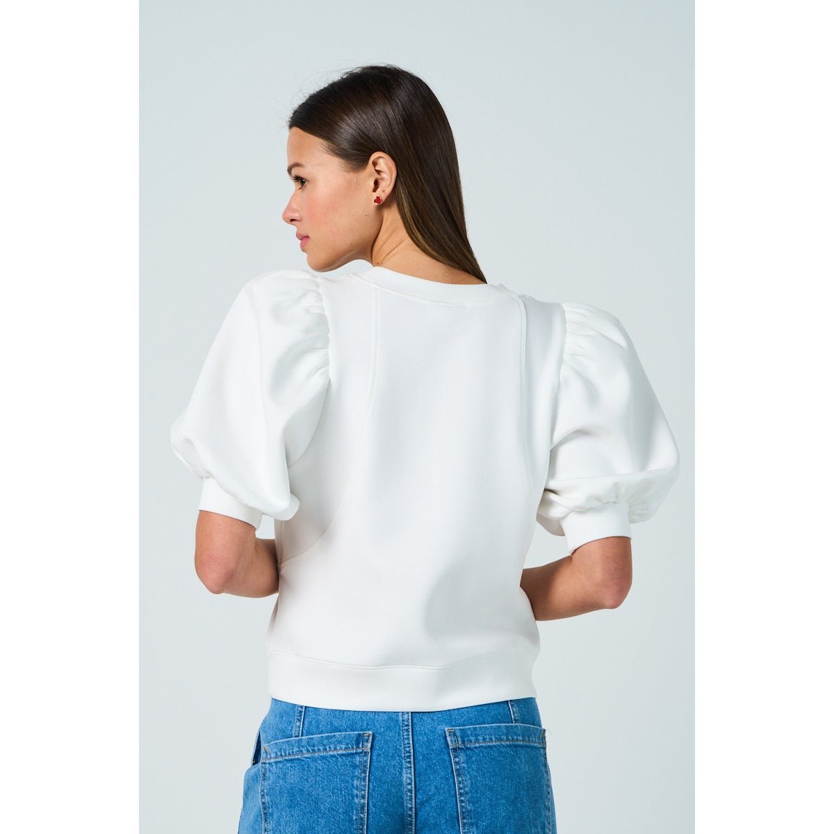 The adorable puff sleeves on this knit top gives a pretty sillhouette and adds a princess like feel to any outfit. The super soft fabric ensures that wear is most flexible and comfortable so it can be paired casuall with some jeans or dressed up with a skirt to add that special charm. 38% cotton 38% viscose 18% polyester 6% spandex
