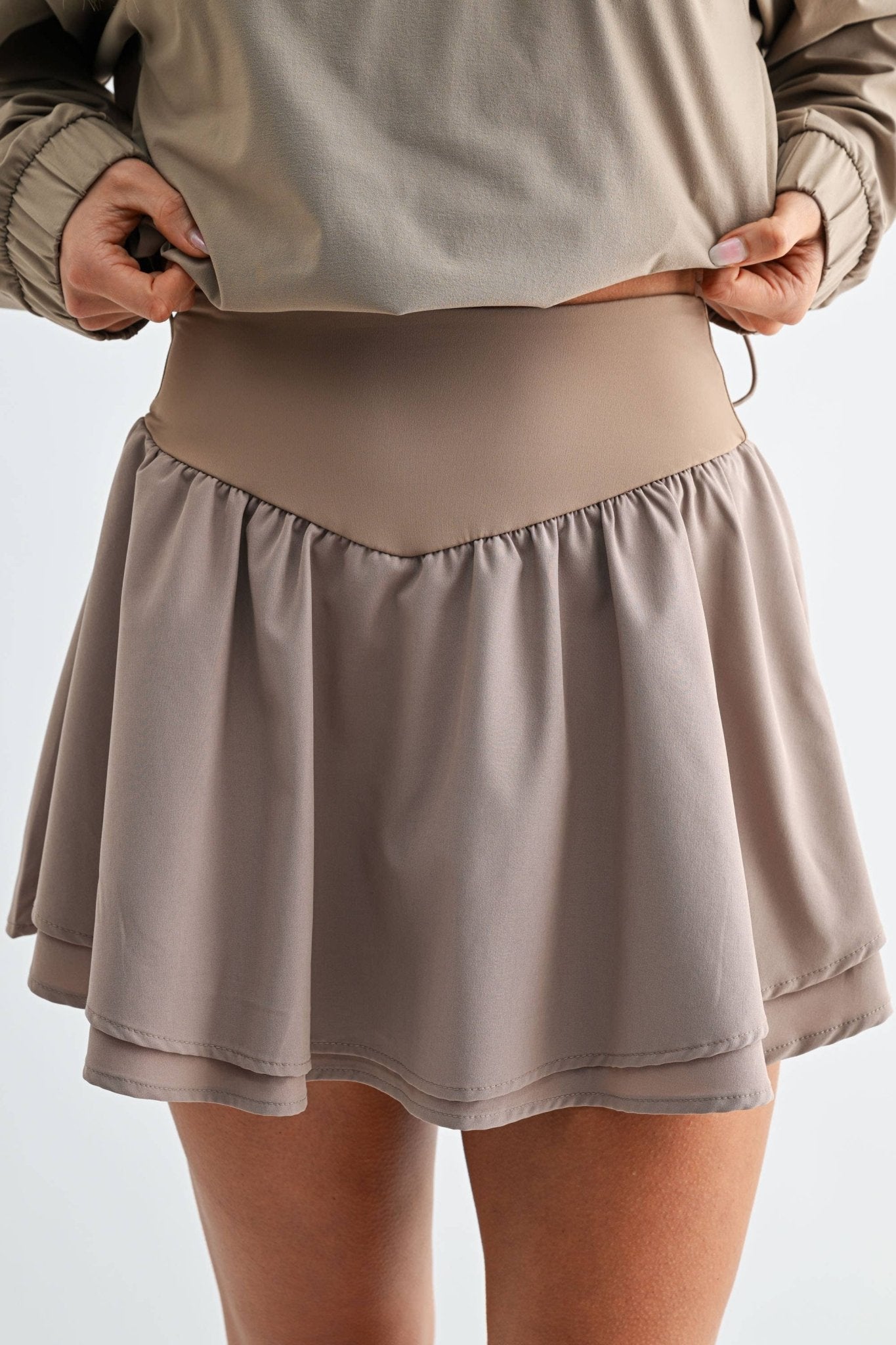 The perfect mix of sporty and cute: a flutter skort with a flattering wide waistband and pocketed inner shorts for easy all-day wear.