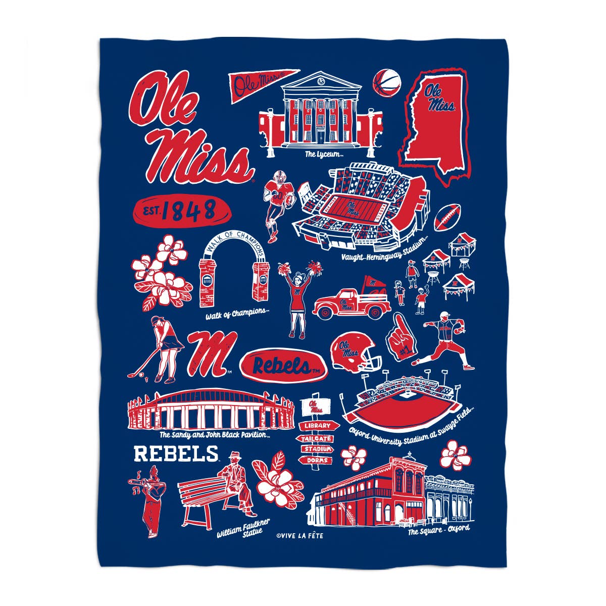 Ole Miss Rebels Hand Sketched Minky Blanket: Navy