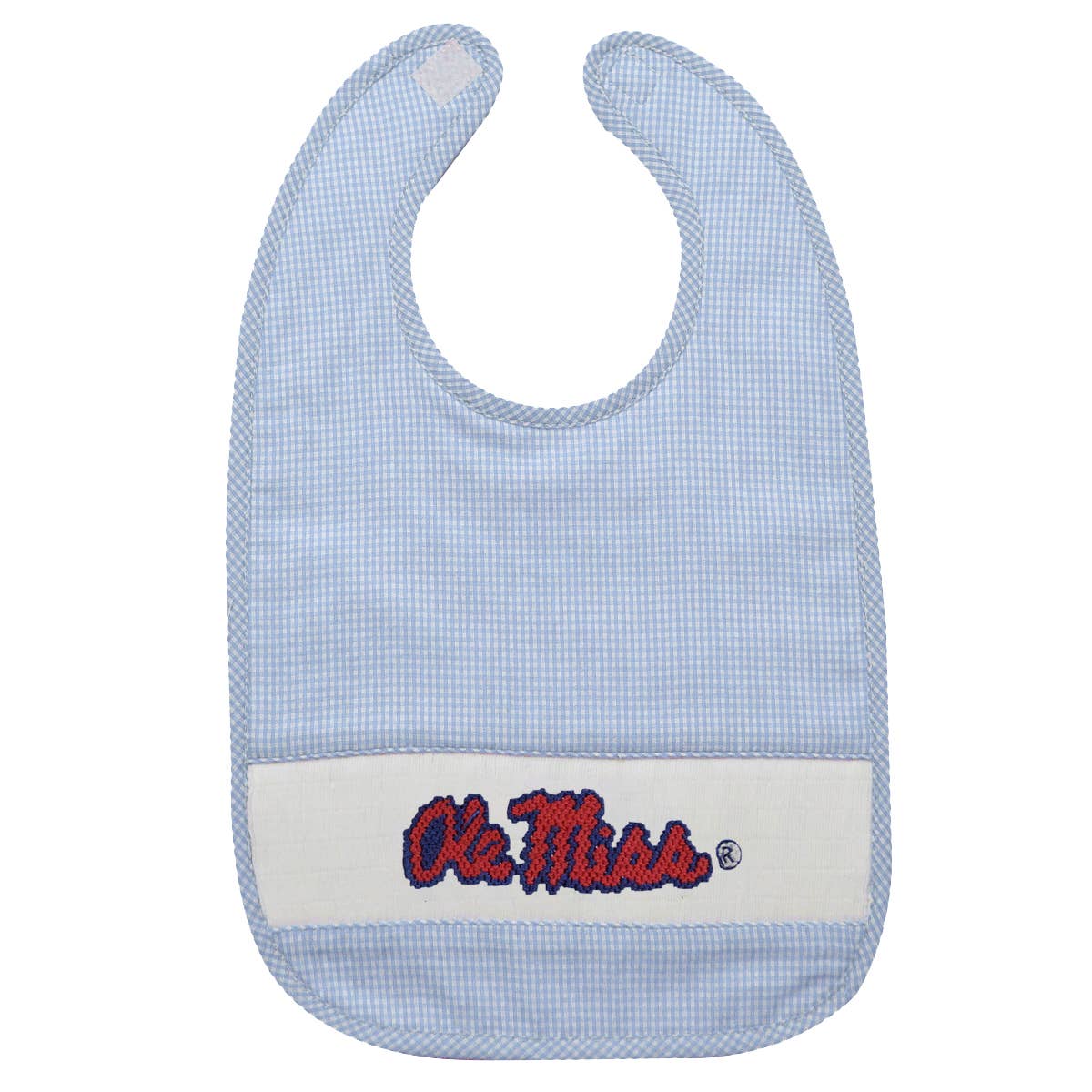 Ole Miss Rebels Smocked Gingham BIB, 55% COTTON 45% POLYESTER, Machine wash