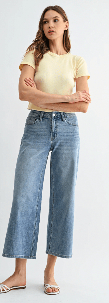 MID-RISE WIDE LEG ANKLE 65% COTTON, 33% POLY, 2% SPAN