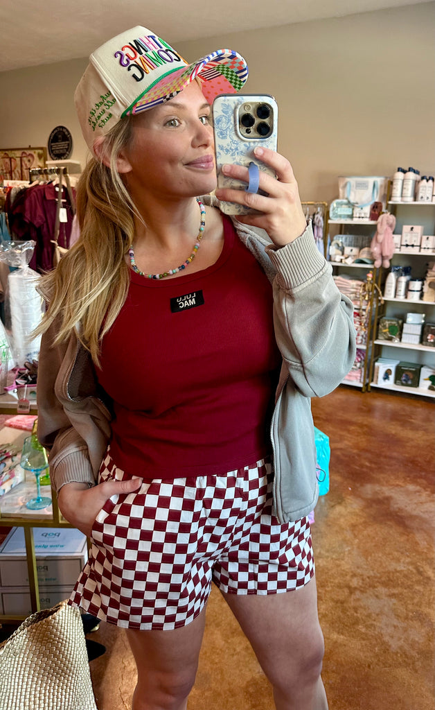 Maroon Checkered Lulu Mac Shorts
