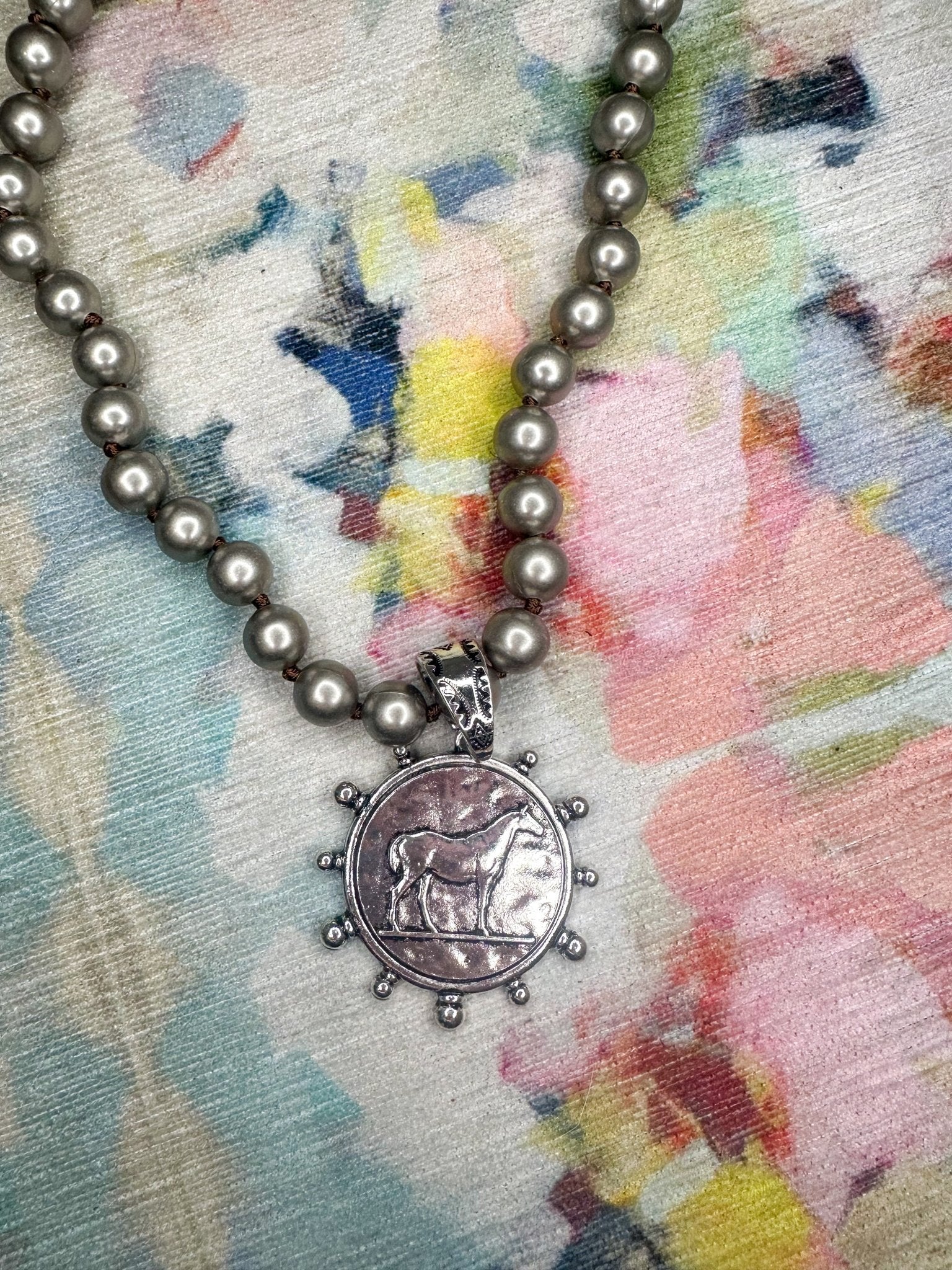 Horse Coin Pendant with Bubbles Around on Faux Navajo Pearls