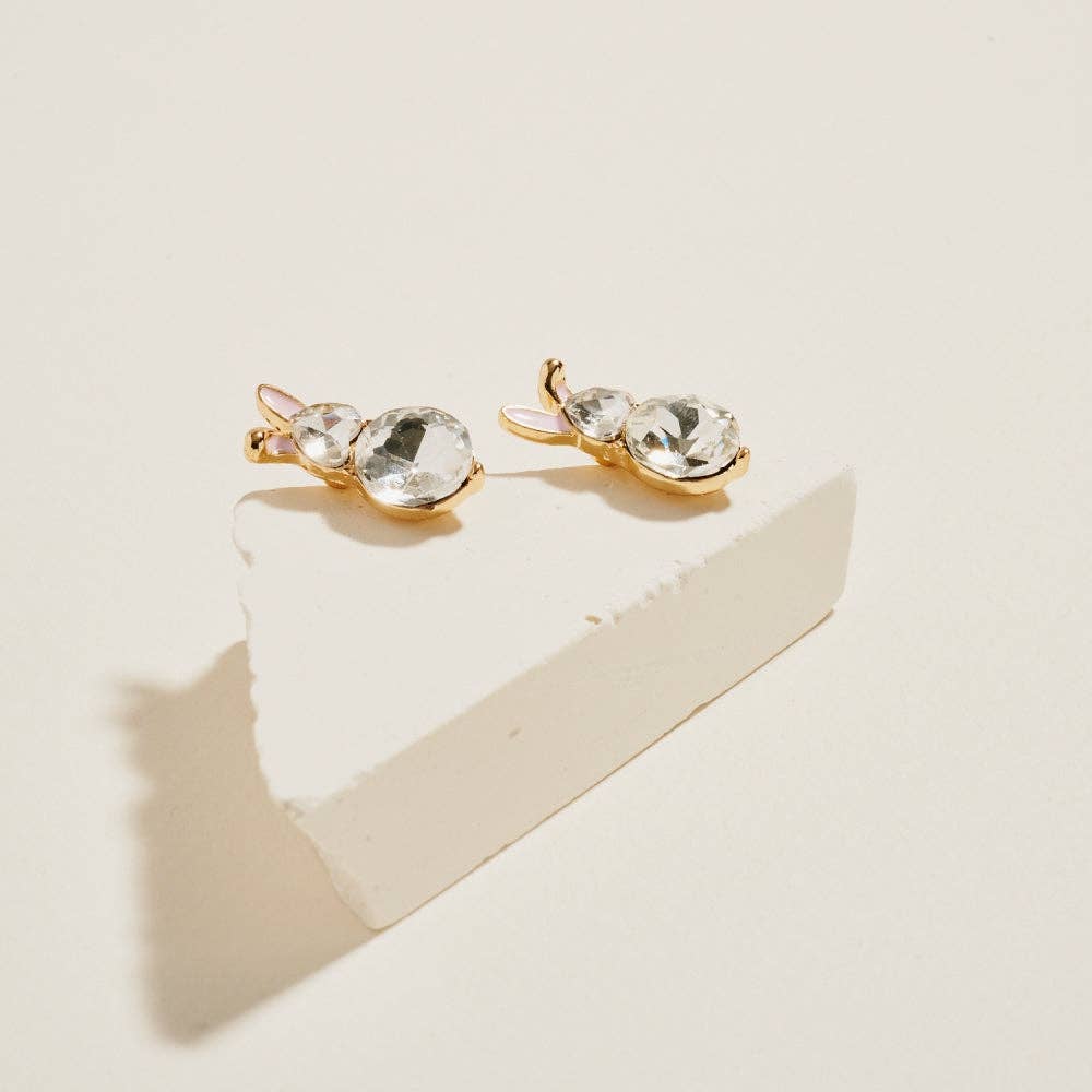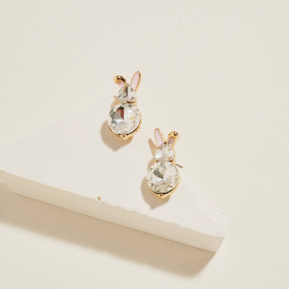 Clear Bunny Rabbit Ears Rhinestone Stud Earrings