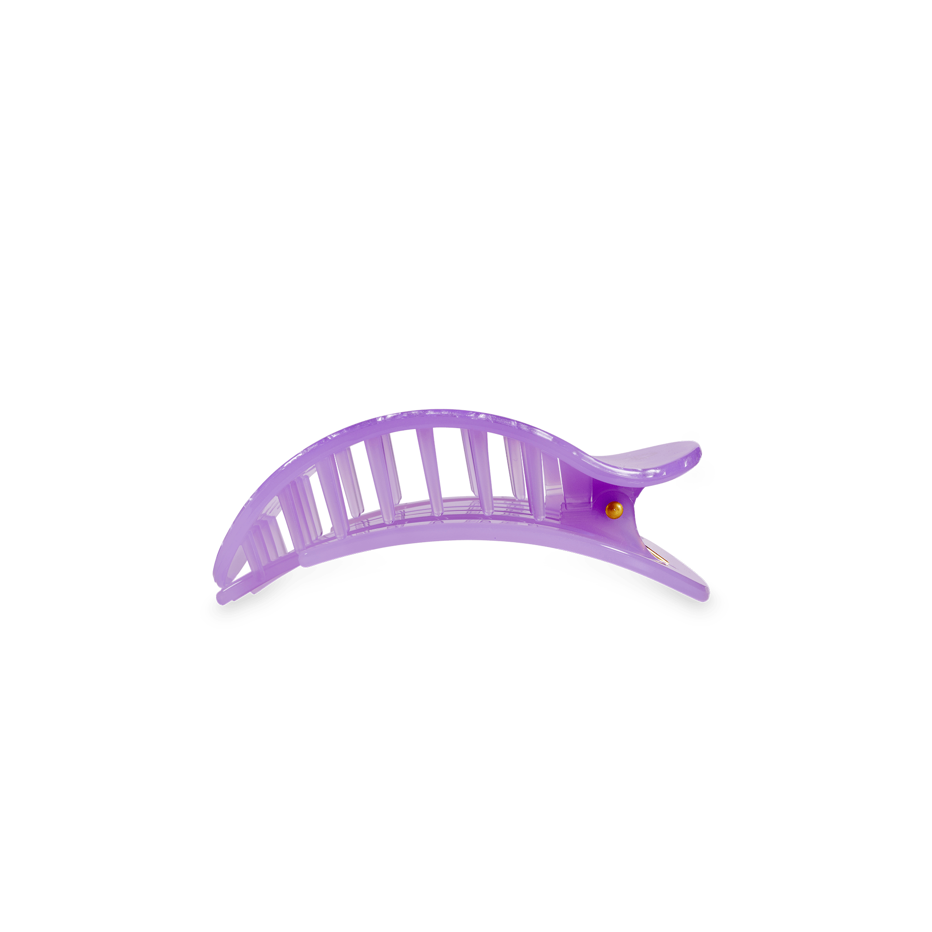 Lay flat and relax with the new TELETIES Lavender Mist Small Flat Round Hair Clip in Purple. This hair clip is designed to allow you to lay back flat, do yoga, or sit comfortably in a seat with a headrest, and it is made with the same material that is nearly unbreakable. Lay down flat with comfort Bendable teeth for a secure yet gentle hold Lightweight, durable, and suitable for all hair types Perfect for all-day wear—from sunup to sundown