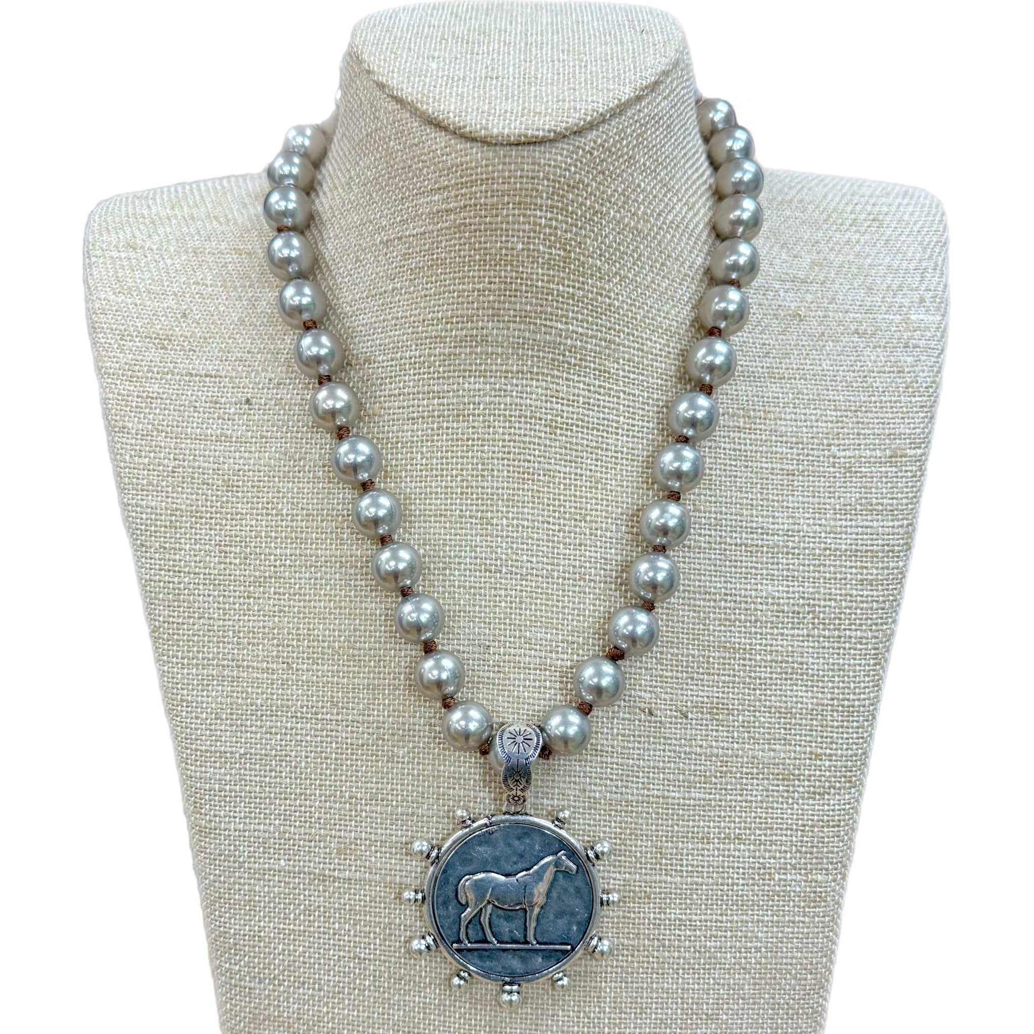 Horse Coin Pendant with Bubbles Around on Faux Navajo Pearls