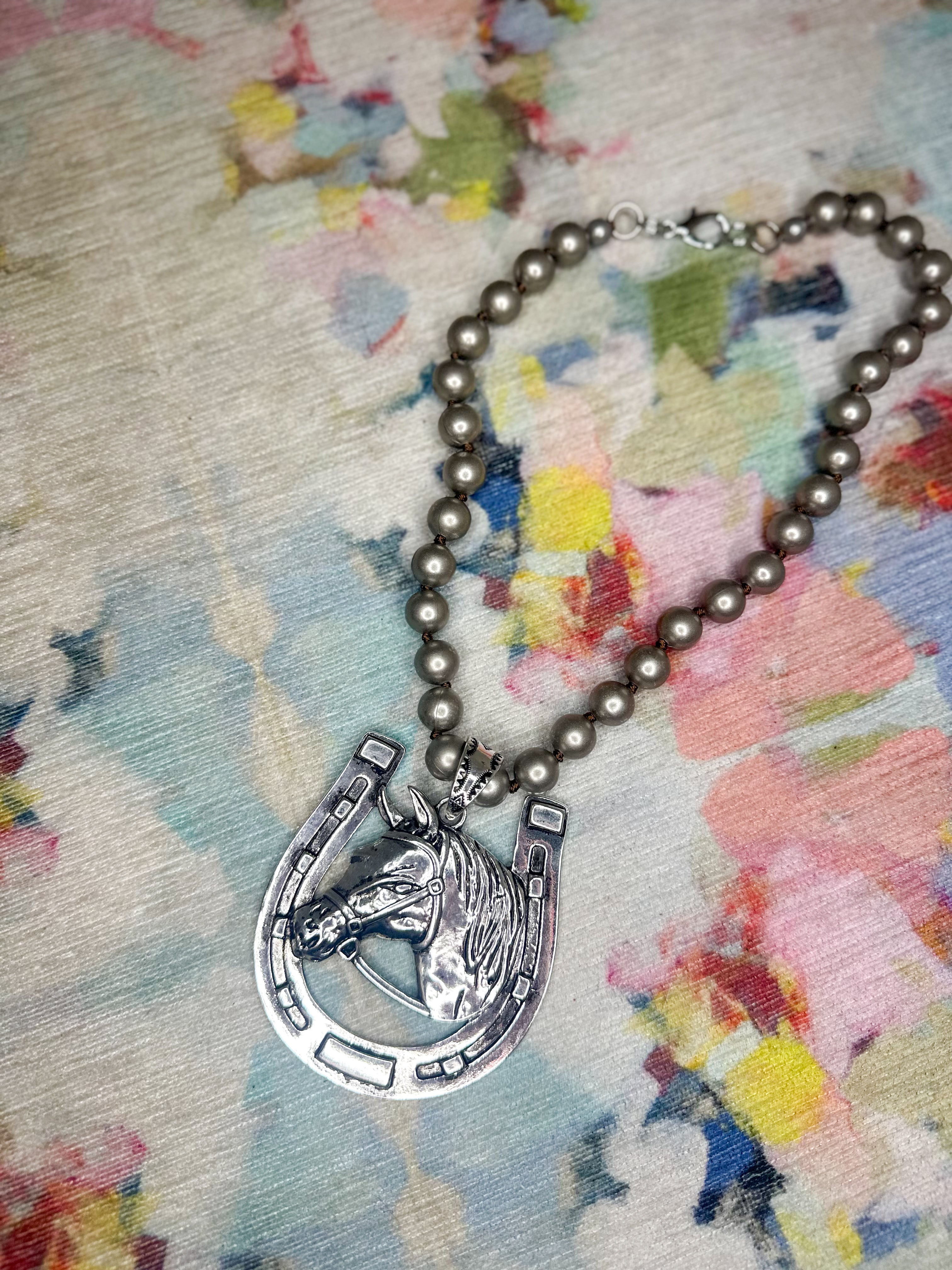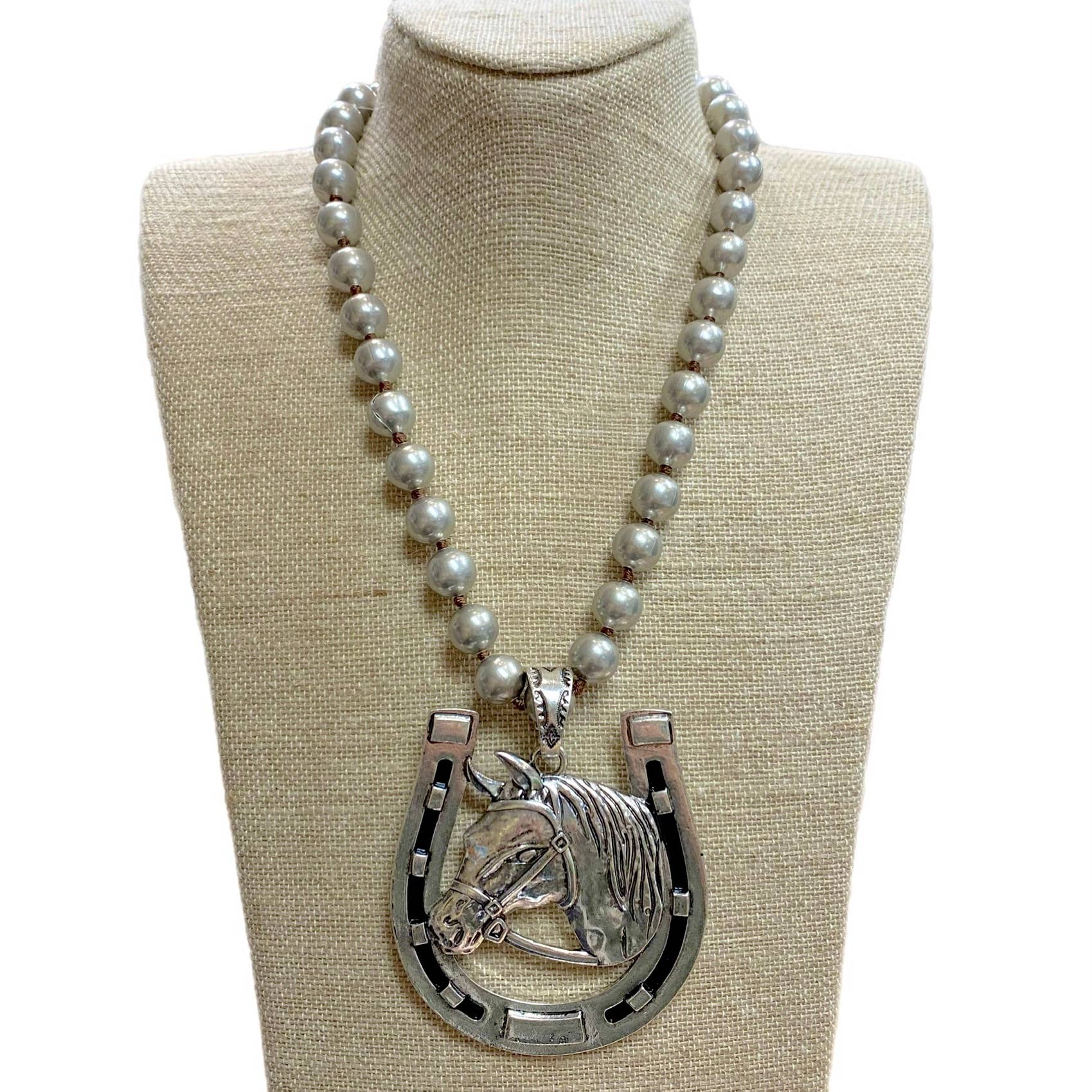 Horse Shoe Pendant on 12mm Faux Navajo Pearl Necklace