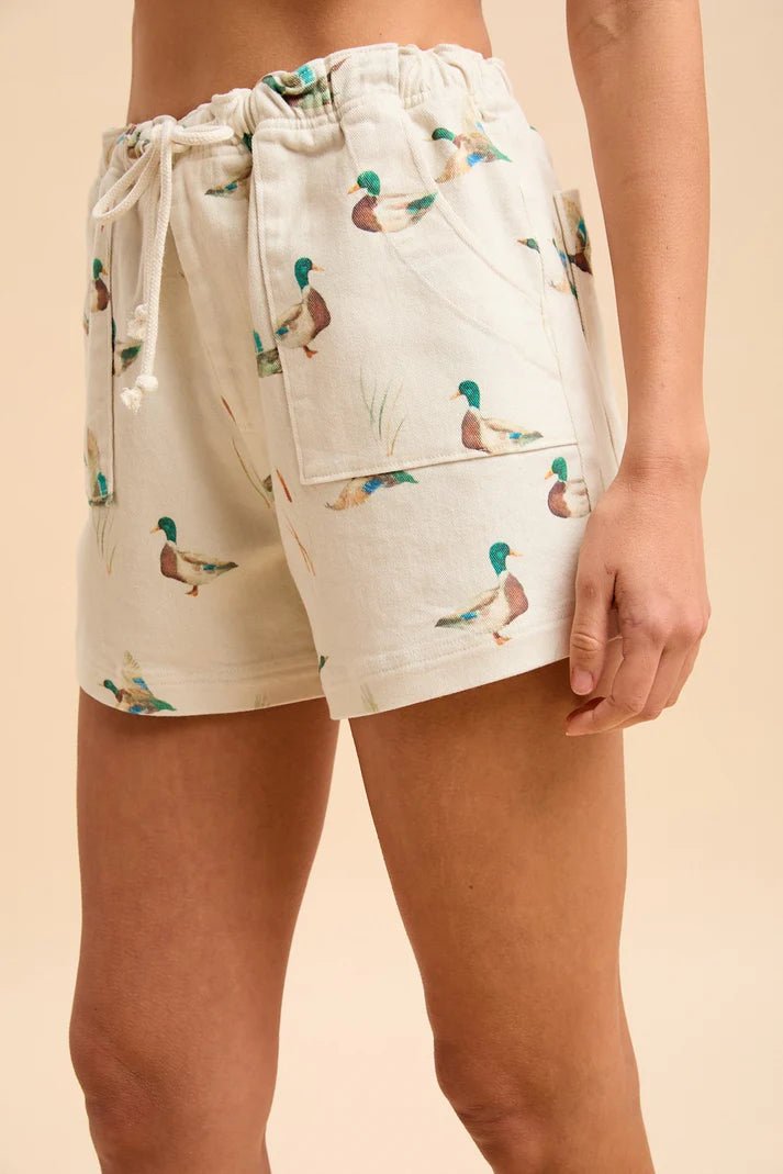 MALLARD DUCK PRINT DRAWSTRING RELAXED FIT SHORTS