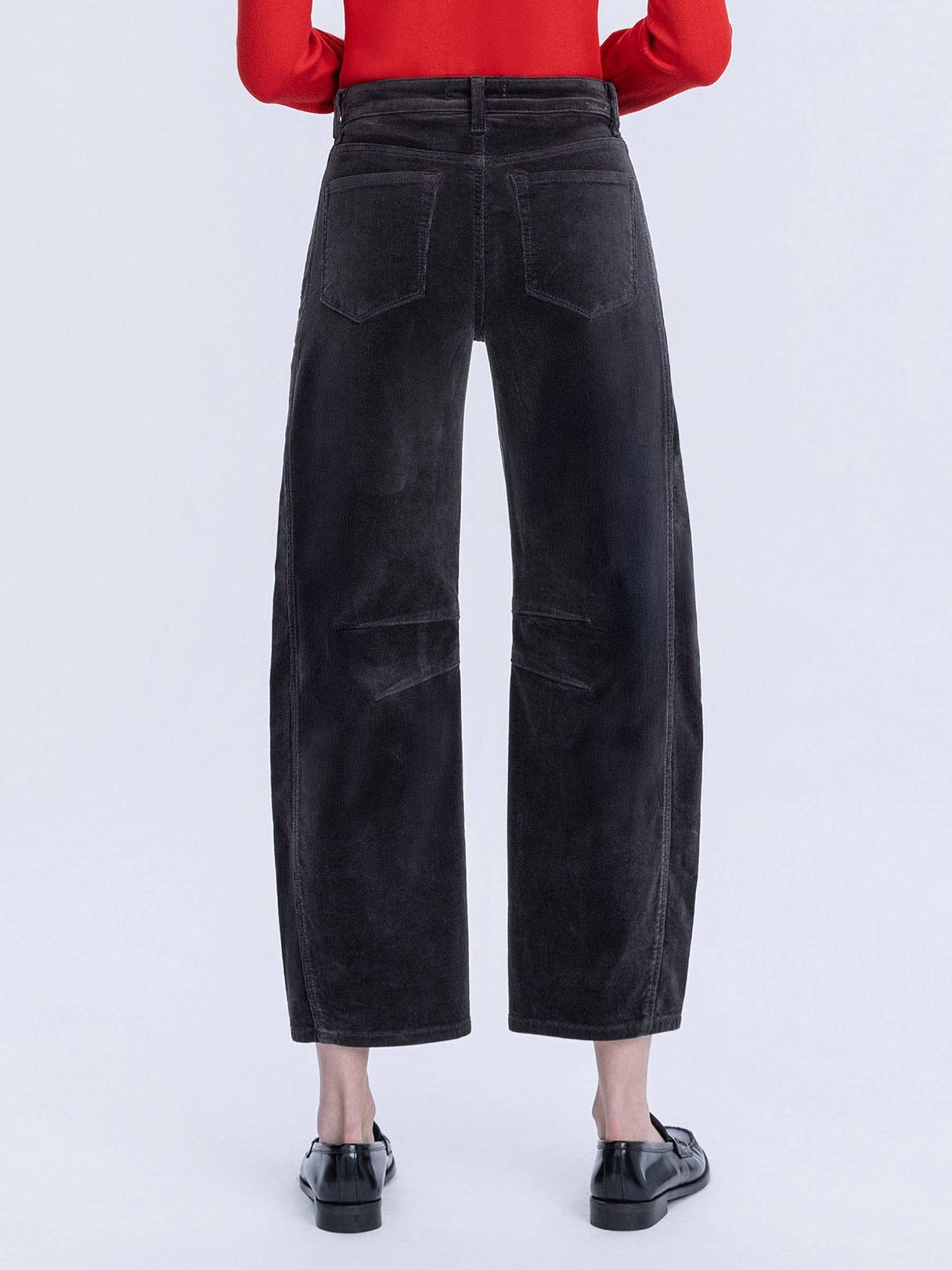 HIGH RISE DARK GRAY CORDUROY BARREL JEANS