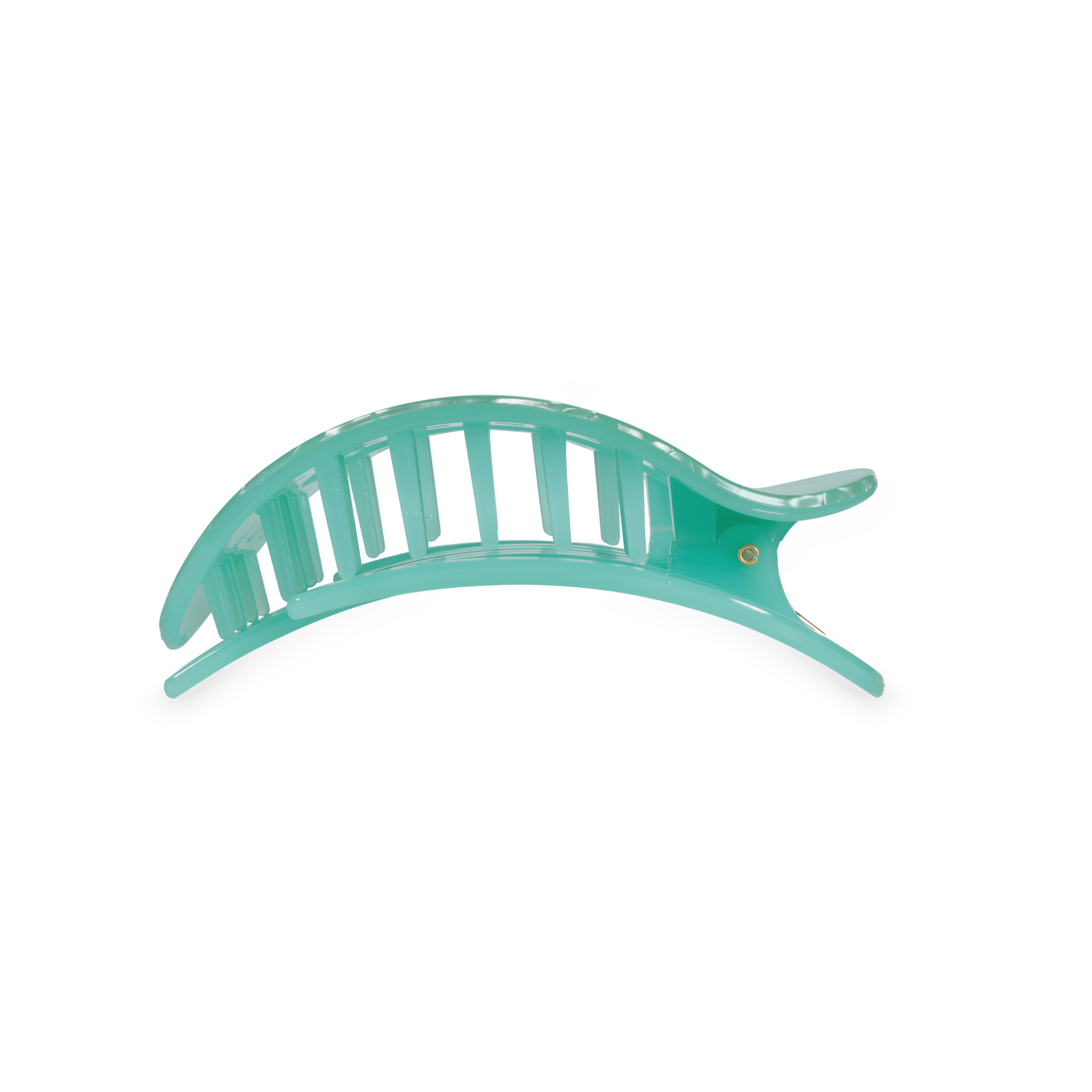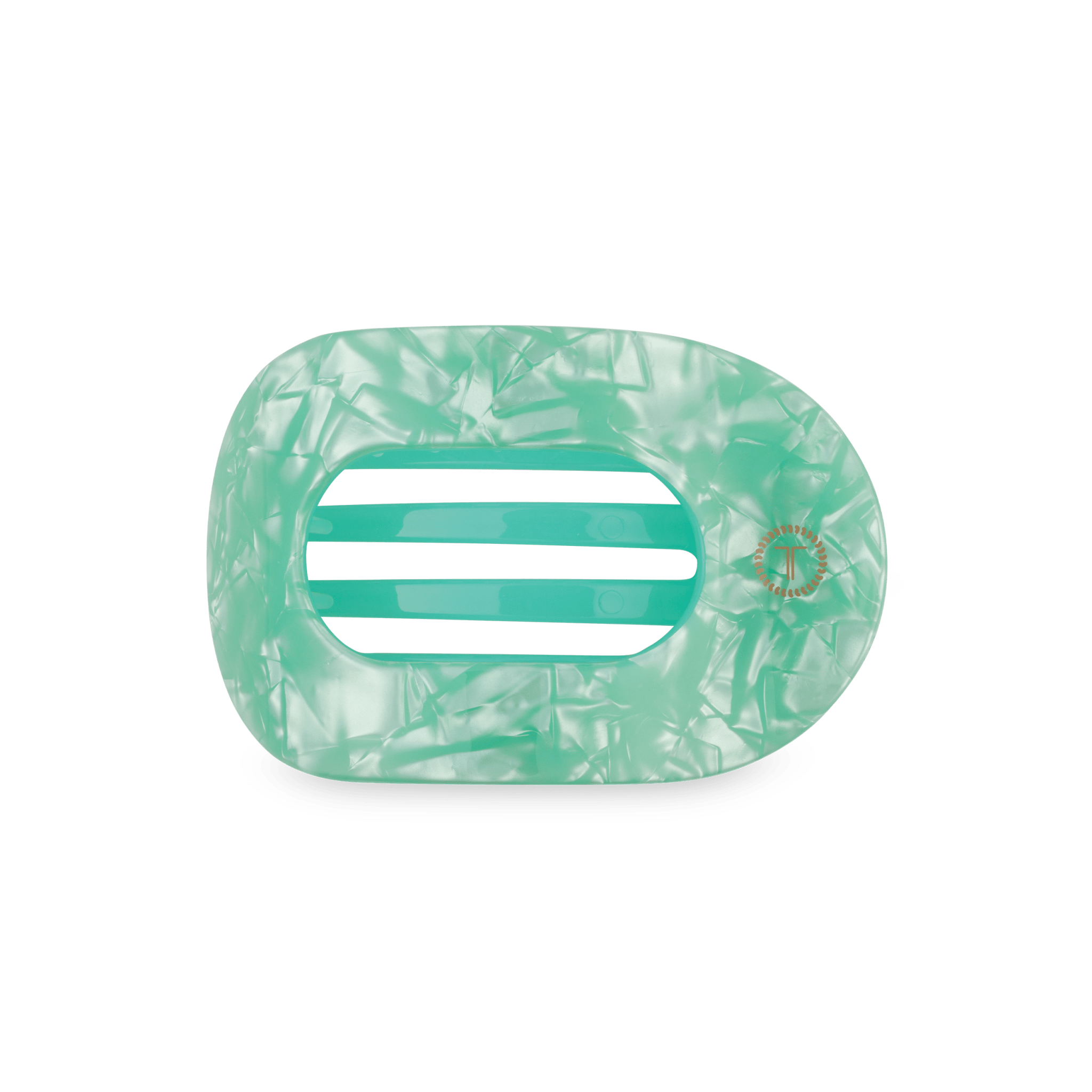 Lay flat and relax with the new TELETIES Spring Splash Medium Flat Round Hair Clip in Green. This hair clip is designed to allow you to lay back flat, do yoga, or sit comfortably in a seat with a headrest, and it is made with the same material that is nearly unbreakable.