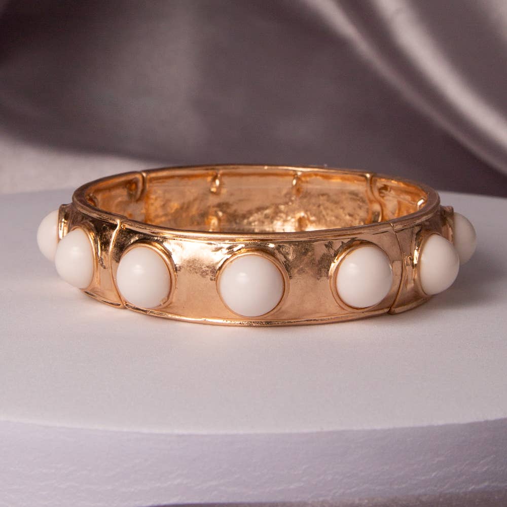 Bezel Set Faux Cabochon Stretch Bangle Bracelet: White
