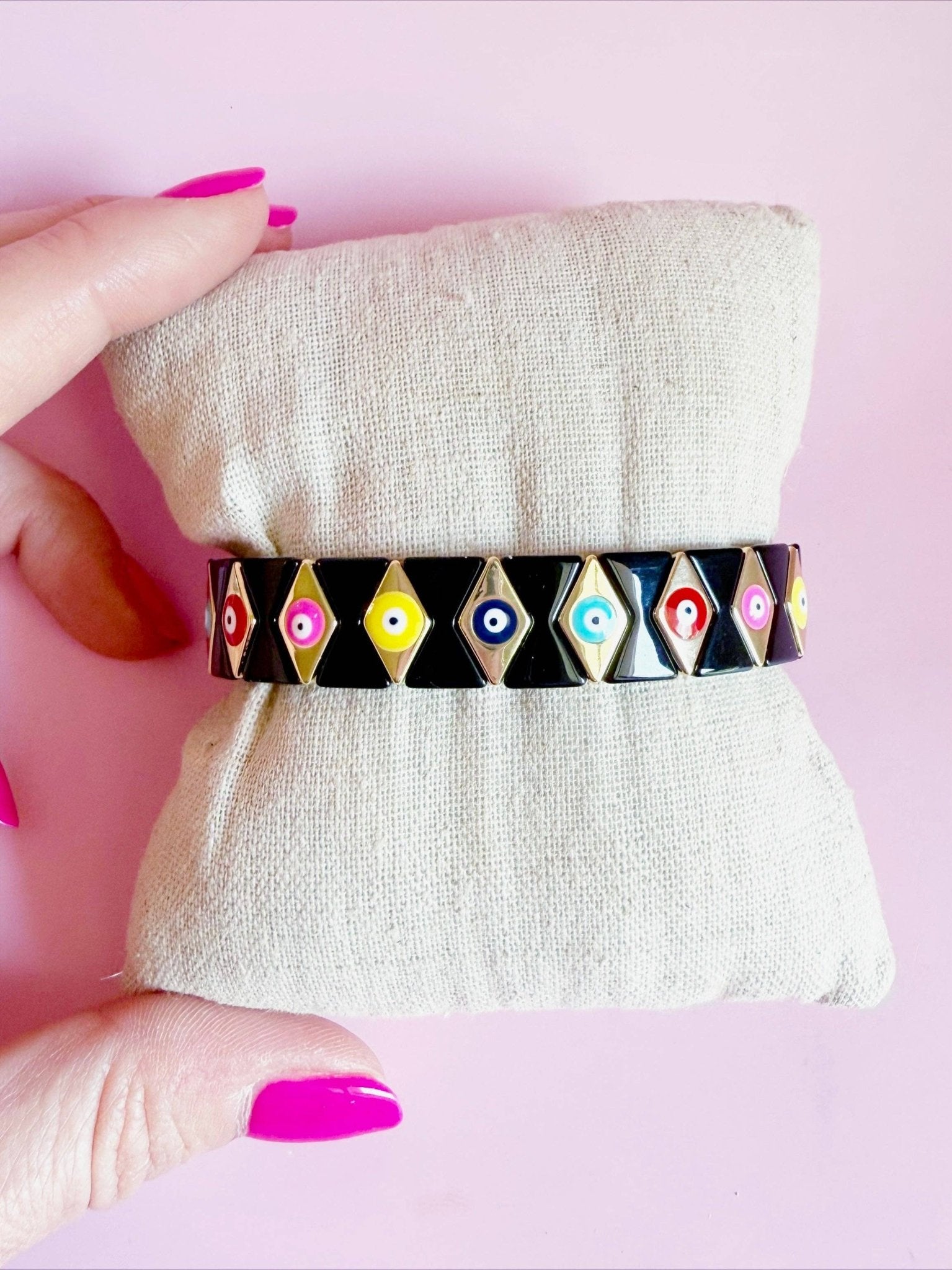 Black and gold bracelet with multicolored accents. The perfect bracelet to add to any stack!